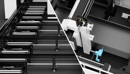 獨特的結構設計,支持原料的整根切割12米上 / 下料